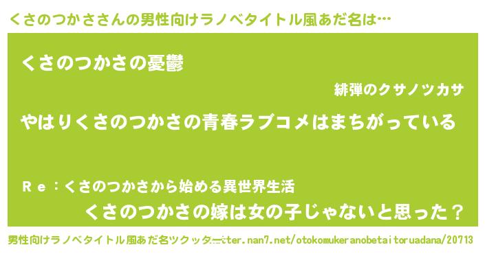 | 意味不明あだ名 | 『くさのつかさフォーエバー』 |