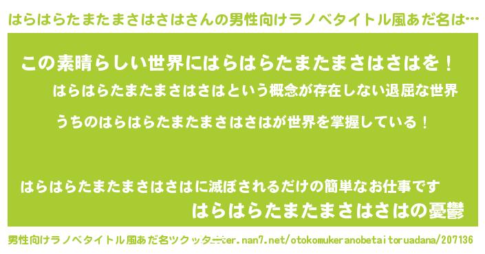 意味不明あだ名 | 『住所不定無職はらはらたまたまさはさは(85歳)』 |
