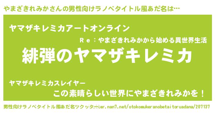 女子向けラノベタイトル風あだ名 | 『シンデレラやまざきれみか家の靴箱館』 |