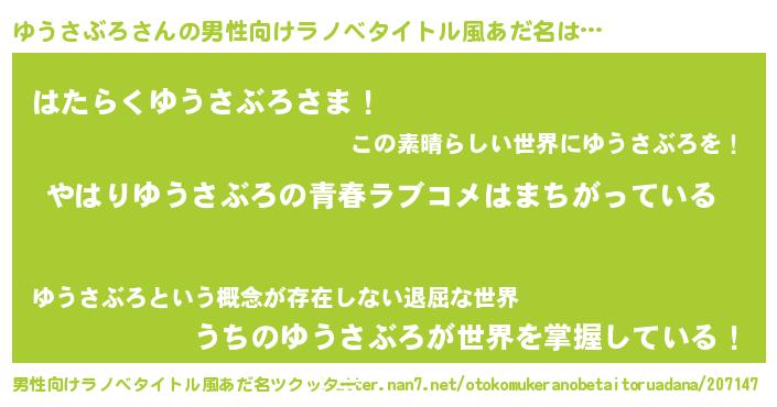 ファンタジー風あだ名 | 『エターナルユウサブロー』 |