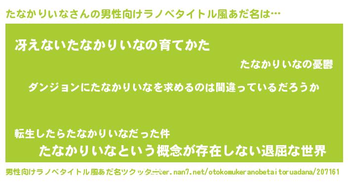 たなかりいなさんの男性向けラノベタイトル風あだ名をツクッター!