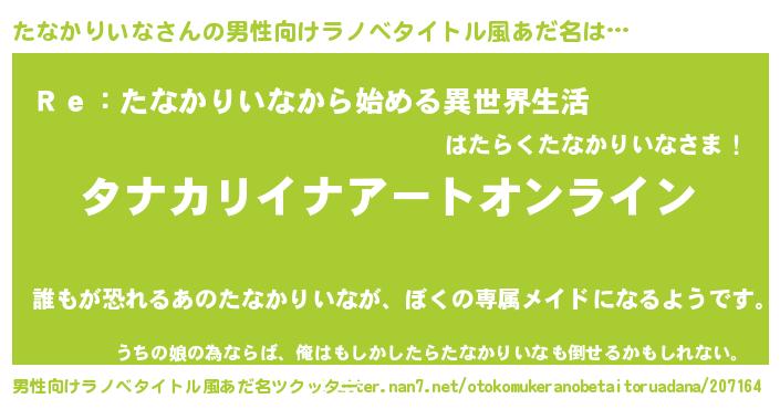 女子向けラノベタイトル風あだ名 | 『誰かこのたなかりいなを説明してください! ~契約から始まるウェディング~』 |