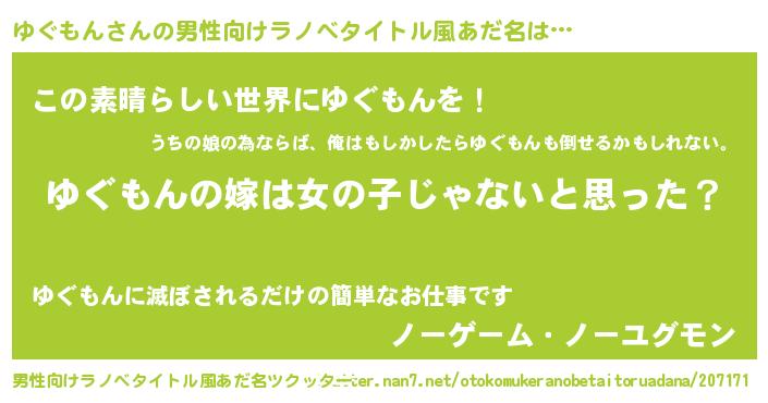 女子向けラノベタイトル風あだ名 | 『ゆぐもん様がみてる』 |