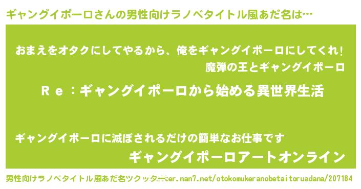 意味不明あだ名 | 『自称ギャングイポーロ』 |