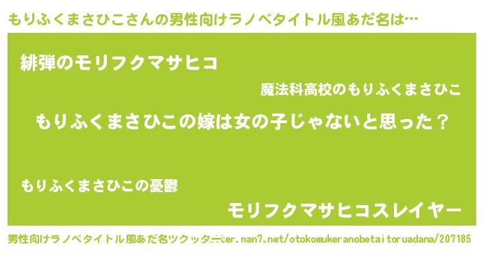 女子向けラノベタイトル風あだ名 | 『もりふくまさひこ様がみてる』 |