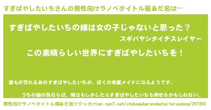 意味不明あだ名 | 『住所不定無職すぎばやしたいち(1歳)』 |