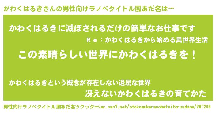 伝説のあだ名 | 『古文書に記された勇者かわくはるき』 |