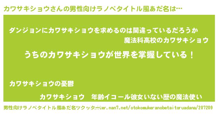 | 意味不明あだ名 | 『とにかく怪しいカワサキショウ』 |