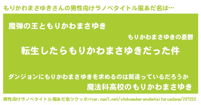 | 女子向けラノベタイトル風あだ名 | 『もりかわまさゆきの玉の輿計画!』 |