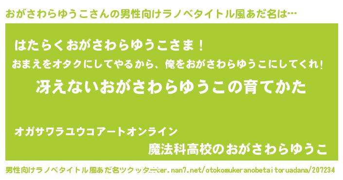 | 意味不明あだ名 | 『自称おがさわらゆうこ』 |