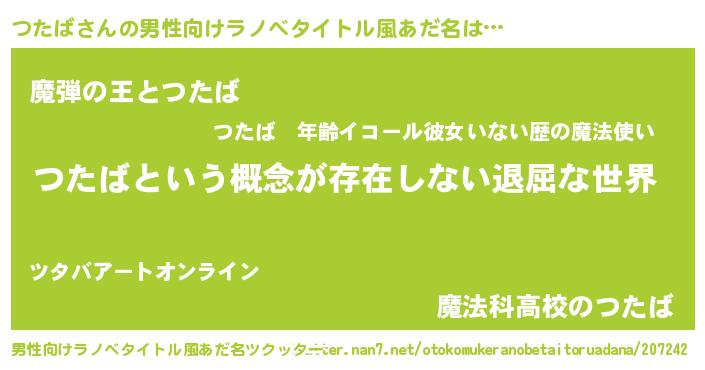 女子向けラノベタイトル風あだ名 | 『異世界で失敗しない100のつたば』 |