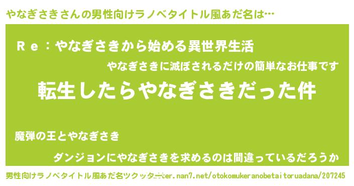 ポケモン風あだ名 | 『ヤナキング』『ヤナセウス』 |