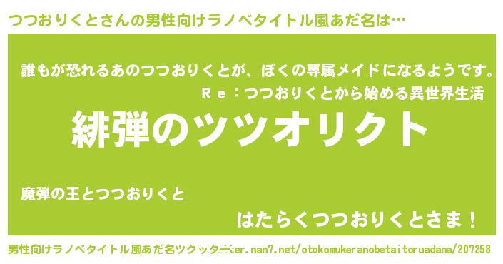 胡散臭い通販商品みたいなあだ名 | 『絶対に幸福をもたらす水素水…その名も「つつおりくと」』 |