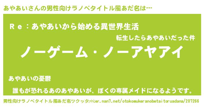 | ヘコむあだ名 | 『あやあい(小並感)』『あやもー』 |