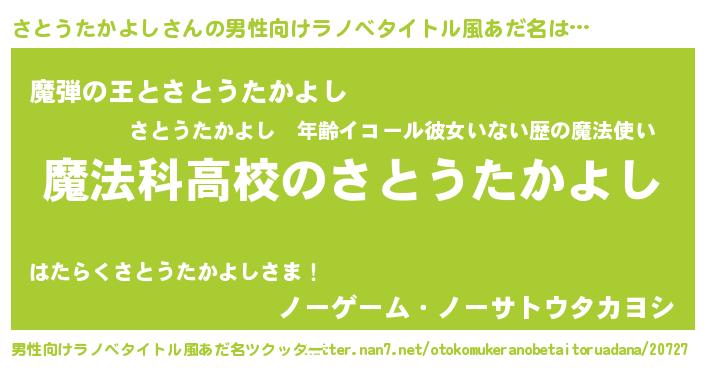 | 意味不明あだ名 | 『自称さとうたかよし』 |