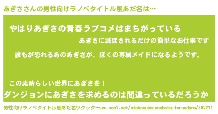 女子向けラノベタイトル風あだ名 | 『異世界でカフェあぎさを開店しました。』 |