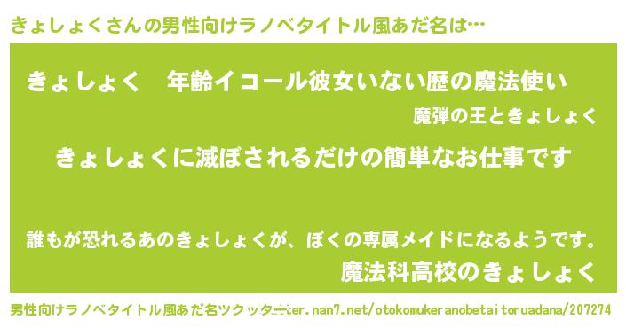 ヘコむあだ名 | 『きょしょく(笑)』『きょっふぃ~』 |