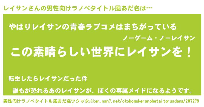 女子向けラノベタイトル風あだ名 | 『乙女ゲームの破滅フラグしかない悪役レイサンに転生してしまった…』 |
