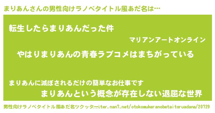| 女子向けラノベタイトル風あだ名 | 『まりあん伯爵の花嫁』 |