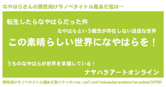 ヘコむあだ名 | 『なやふぇ~』『なやはら(笑)』 |