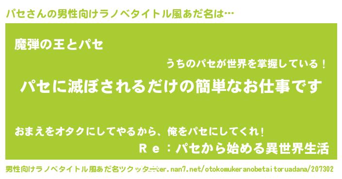 女子向けラノベタイトル風あだ名 | 『横柄パセと宰相陛下』 |