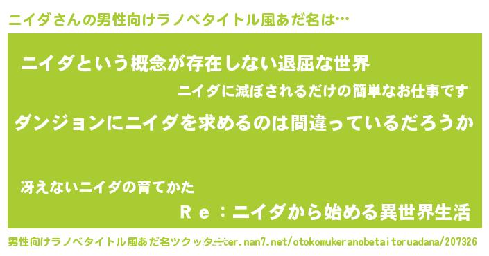 女子向けラノベタイトル風あだ名 | 『ニイダの卵を拾いまして』『闇のニイダ』 |
