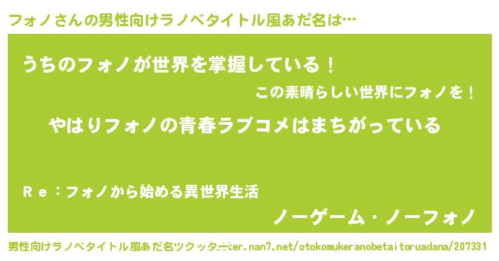 女子向けラノベタイトル風あだ名 | 『フォノの雑貨屋さん』『闇のフォノ』 |