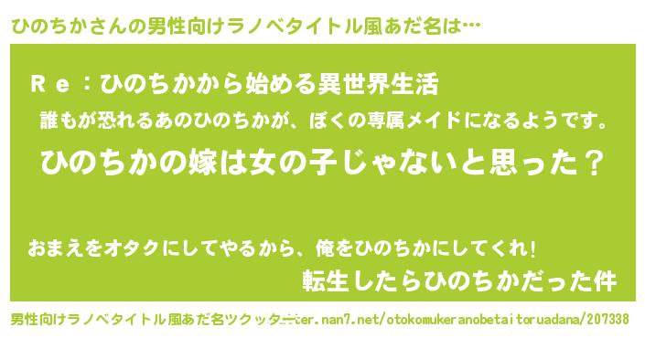 | 女子向けラノベタイトル風あだ名 | 『ひのちか様がみてる』『闇のひのちか』 |