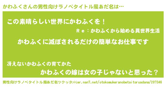 | 意味不明あだ名 | 『住所不定無職かわふく(59歳)』 |