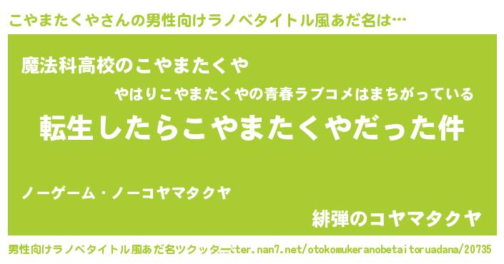 | ヒーロー風カッコイイあだ名 | 『サイバー戦士コヤマタクヤ』 |