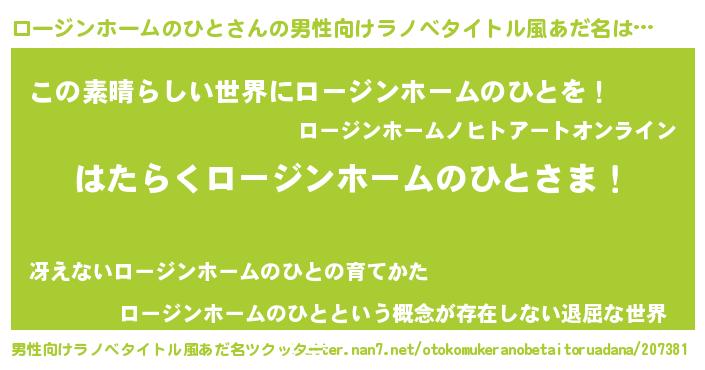 | ヘコむあだ名 | 『ロージンホームのひと(小並感)』『ローお』 |