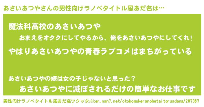 女子向けラノベタイトル風あだ名 | 『あさいあつやの雑貨屋さん』 |