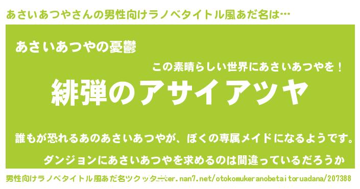 女子向けラノベタイトル風あだ名 | 『シンデレラあさいあつや家の靴箱館』 |