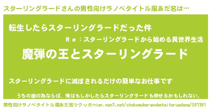 意味不明あだ名 | 『住所不定無職スターリングラード(7歳)』 |