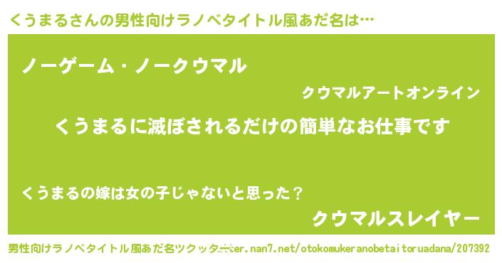 女子向けラノベタイトル風あだ名 | 『横柄くうまると宰相陛下』 |