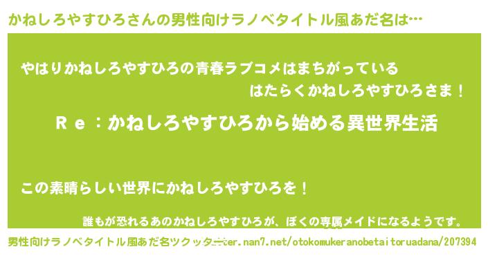 女子向けラノベタイトル風あだ名 | 『かねしろやすひろストレイドッグス』 |
