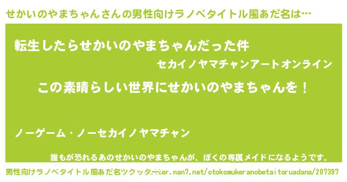 | ヘコむあだ名 | 『せかいのやまちゃん(苦笑)』『せかにゅー』 |