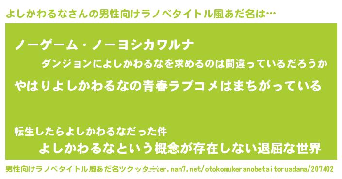 | 意味不明あだ名 | 『よしかわるなフォーエバー』 |