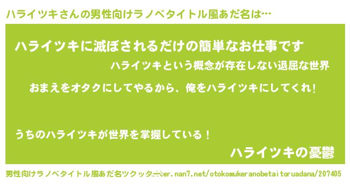 | 胡散臭い通販商品みたいなあだ名 | 『100人中100人が認めたイリジウム磁石…その名も「ハライツキ」』 |
