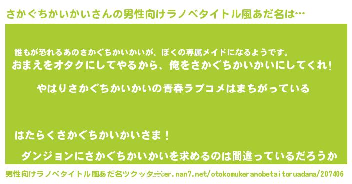 | 女子向けラノベタイトル風あだ名 | 『さかぐちかいかいの雑貨屋さん』 |