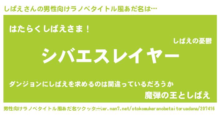 | 料理風あだ名 | 『しばえごはん』『栗としばえのマフィン』 |