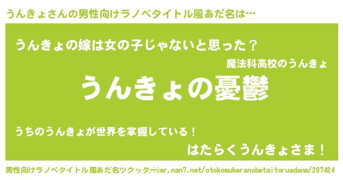 | 女子向けラノベタイトル風あだ名 | 『(仮)うんきょのやんごとなき事情』 |