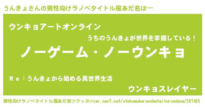 | 女子向けラノベタイトル風あだ名 | 『死神うんきょの再婚』 |