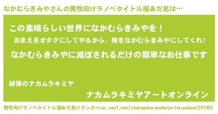 | ヘコむあだ名 | 『なかっふぃ~』『なかむらきみや(震え声)』 |