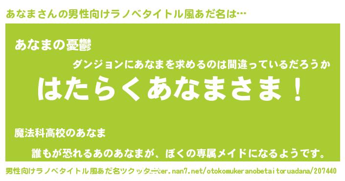 | 胡散臭い通販商品みたいなあだ名 | 『必ず成功する水晶球…その名も「あなま」』 |