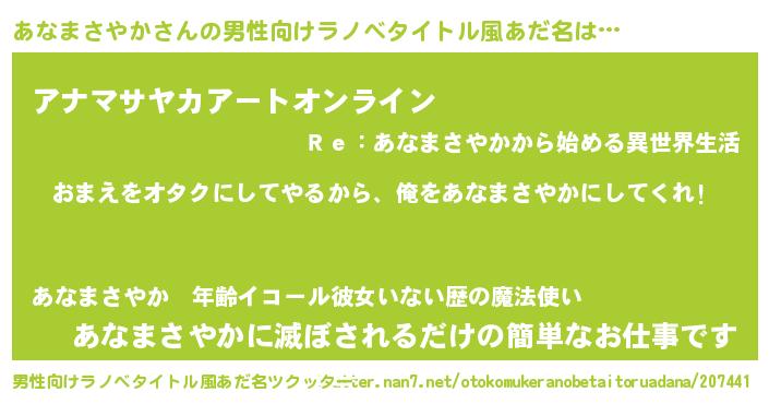 | 欧米人風あだ名 | 『ダニエルあなまさやか』 |