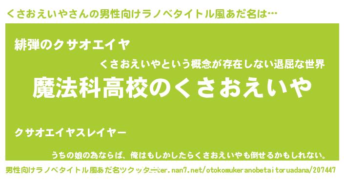 | 女子向けラノベタイトル風あだ名 | 『くさおえいやアンティーク』 |