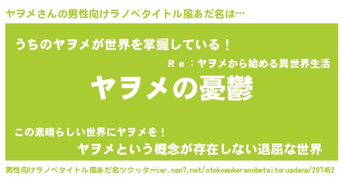 | 胡散臭い通販商品みたいなあだ名 | 『必ず成功する霊験あらたかなお札…その名も「ヤヲメ」』 |