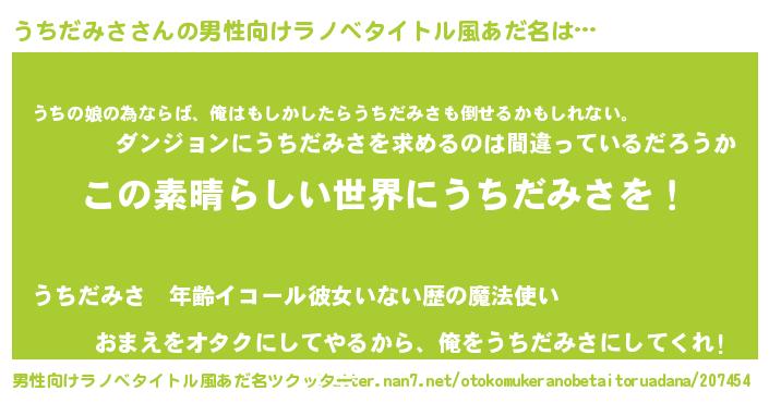 | 胡散臭い通販商品みたいなあだ名 | 『あなたにだけ特別に提供する世界で10本だけ現存している希少なブランデー…その名も「うちだみさ」』 |