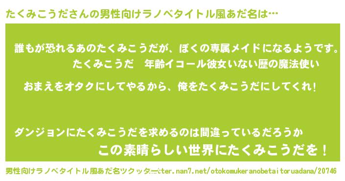 | 伝説のあだ名 | 『魔王と互角に渡り合う占い師たくみこうだ』 |
